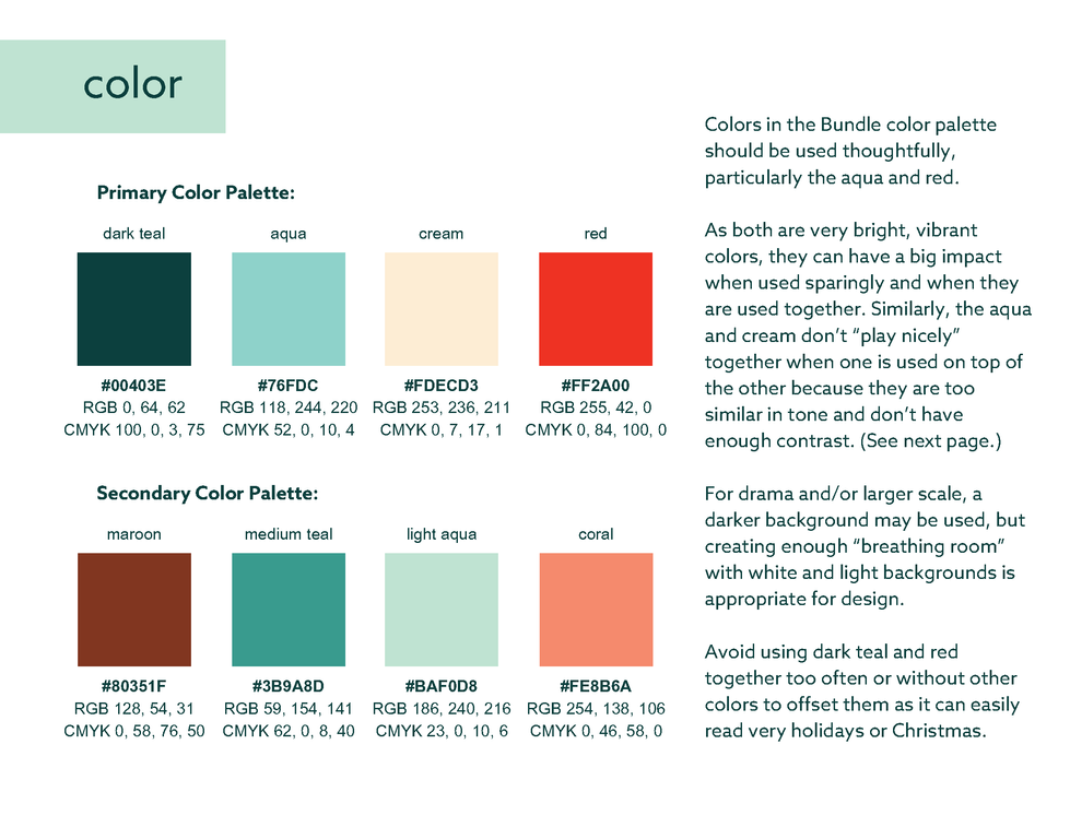 I led the full visual rebrand for Bundle, evolving their look into something more modern, human, and unmistakably them. From color palette and typography to illustration style and motion principles, I built out a complete visual system that reflected their bold, people-first mission. I also created a comprehensive style guide to keep everything consistent across teams—clear, flexible, and designed to grow with the brand.